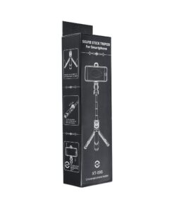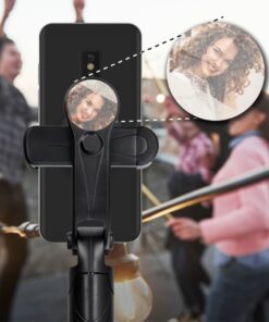 Selfie stick with a tripod function and a mirror. Equipped with a wireless remote control for taking photos. Built-in mirror makes us see our reflection while taking photos, being able to judge their quality. Adjustable handle allows you to adjust product parameters to individual needs. Wireless remote control with remote shutter release allows you to take photos without holding a stick. The tripod function stabilizes the position of the device and allows you to take pictures from a distance. Small size and light construction make the product fit in a bag or backpack.