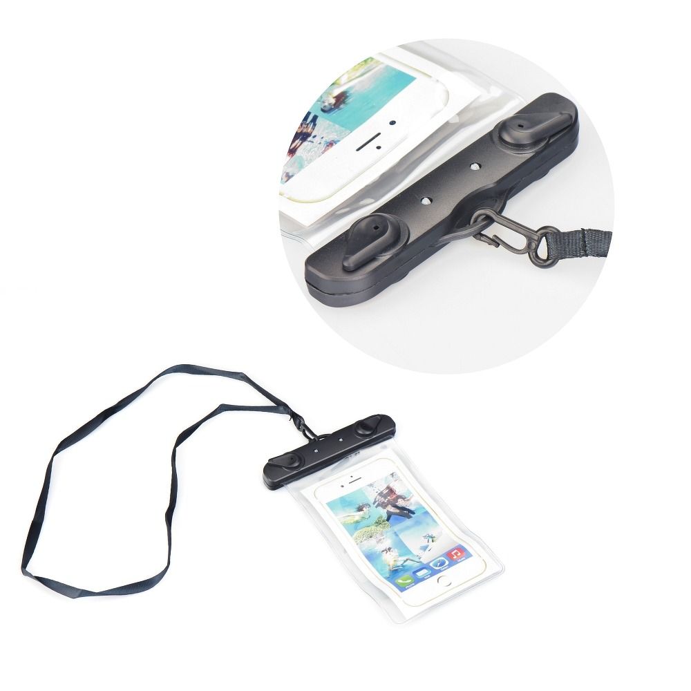 Universelle wasserdichte Tasche mit doppelseitigem Kunststoffverschluss und praktischem Befestigungselement für eine Schnur. Ideal für den Strand – schützt sicher vor spritzendem Wasser. Das Etui ist mit einem speziellen zweistufigen Schutzsystem ausgestattet, das das Eindringen von Wasser in das Gerät deutlich reduziert. Hergestellt aus strapazierfähigem Silikon, verfügt das Etui über eine Schnur, mit der das Telefon bequem um den Hals getragen werden kann. Es besitzt jedoch keine offizielle Wasserdichtigkeitszertifizierung. Abmessungen des Sichtfensters: 80 x 145 mm.