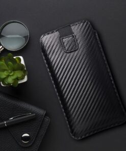 Universelle Tasche mit Carbon-Muster – Forcell POCKET CARBON. Bietet vollständigen Schutz des Geräts von beiden Seiten. Ausgestattet mit Klettverschluss und PULL-UP-System, das das Herausnehmen des Telefons erleichtert. In mehreren Größen erhältlich. Während eine herkömmliche Rückenschale keinen vollständigen Schutz des Smartphones bietet und den Bildschirm ungeschützt lässt, schützt die Forcell POCKET CARBON-Hülle das Telefon von beiden Seiten und minimiert so das Risiko von Beschädigungen und Kratzern. Hergestellt aus hochwertigem ökologischem Leder, ist sie widerstandsfähig gegen Verletzungen und Abnutzung. So behalten Sie lange Zeit ein schönes Aussehen. Das Carbon-Muster verleiht der Hülle ein elegantes, geschäftliches Erscheinungsbild. Die Hülle ist mit einem Klettverschluss versehen, der ein Herausgleiten des Telefons aus der Tasche verhindert. Zudem erleichtert der im Inneren angebrachte PULL-UP-Riemen das Herausnehmen des Geräts durch schnelles Herausziehen. Das AIR ON-System sorgt für eine ständige Luftzufuhr ins Innere der Tasche, wodurch das Telefon vor Überhitzung geschützt wird und die Lautstärke – insbesondere bei eingehenden Anrufen – erhöht wird. Das Innere der Tasche ist mit Alcantara ausgekleidet, was Kratzer am Gehäuse verhindert und das schnelle Ein- und Ausführen des Telefons erleichtert. Die integrierte Gürtel-Schlaufe ermöglicht das Befestigen der Hülle am Hosenbund, sodass sie stets griffbereit ist. Ein spezieller Haken erlaubt das Anbringen einer Schlaufe und somit den komfortablen Transport der Hülle. Farbe: Schwarz Innere Abmessungen: 131 x 72 mm