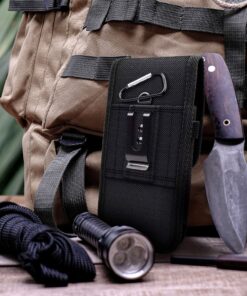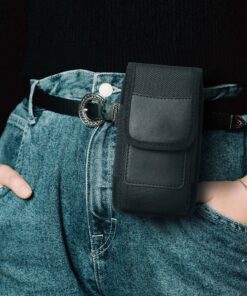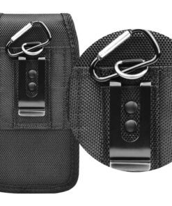 A waterproof, universal phone case that can be attached with a belt loop, clip, or snap hook. It also has a credit card pocket and a pen holder. An accessory dedicated to phones that size 17 × 9 × 3 cm.