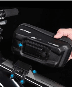 Die WILDMAN XS2 Rahmentasche ist eine funktionale Tasche mit Platz für ein Smartphone, die am oberen Rahmen montiert wird. Sie ermöglicht es Ihnen, Ihr Telefon während der Fahrt bequem zu nutzen und wichtige Dinge sicher zu verstauen.